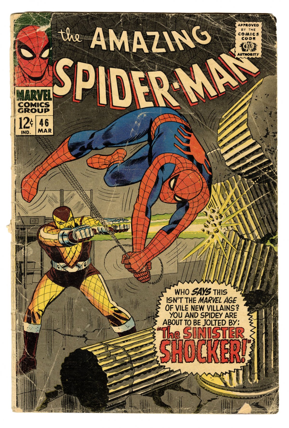 First appearance of the Shocker in "The Sinister Shocker," script by Stan Lee, art by John Romita Sr.; Peter moves in with Harry and is confronted by the Shocker for the first time; Shocker brutalizes Spider-Man, but the Webslinger defeats him with his webs; once at Harry's, Peter doesn't feel happy, although he doesn't know why.