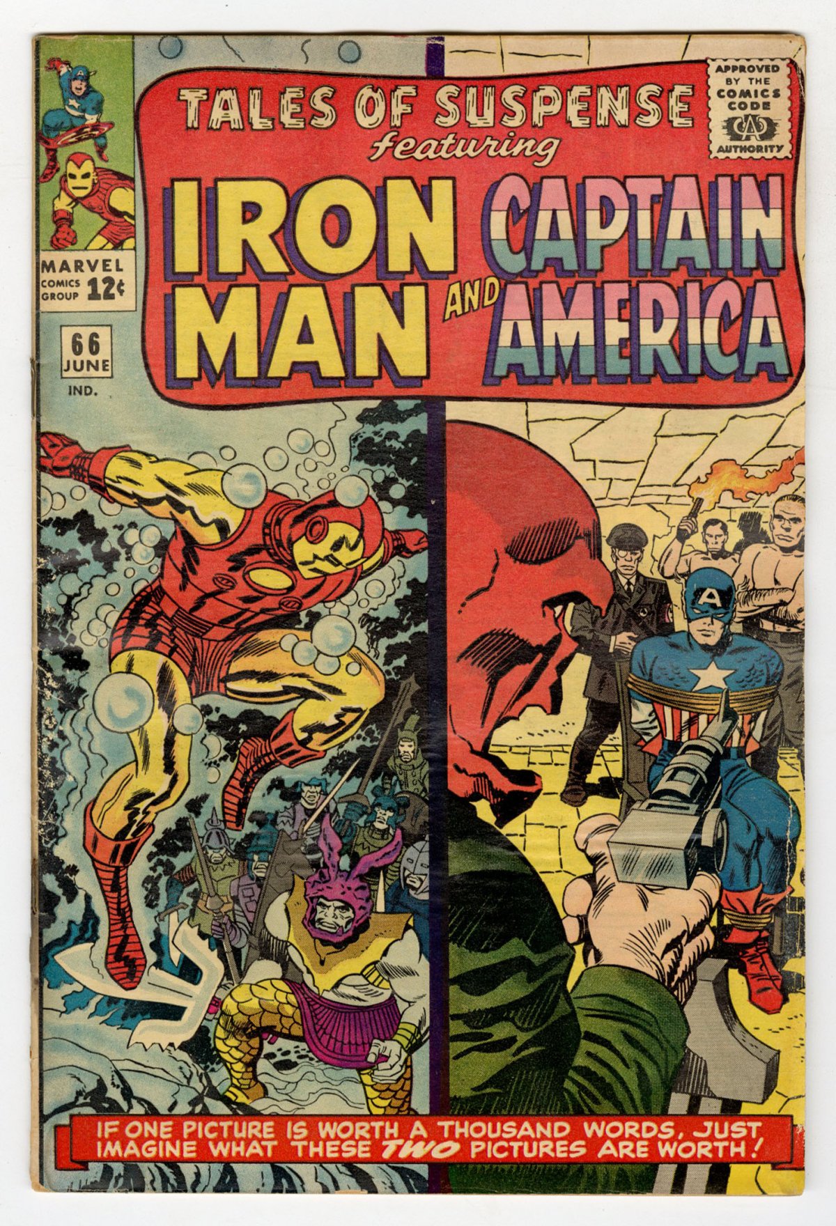 origin & 1st Silver Age app of the original Red Skull (Johann Schmidt); debut of Iron Man's 'Model III' w/ repulsor rays; Jack Kirby cover & art; COMIC BOOK IMPACT rating of 7 (CBI)
