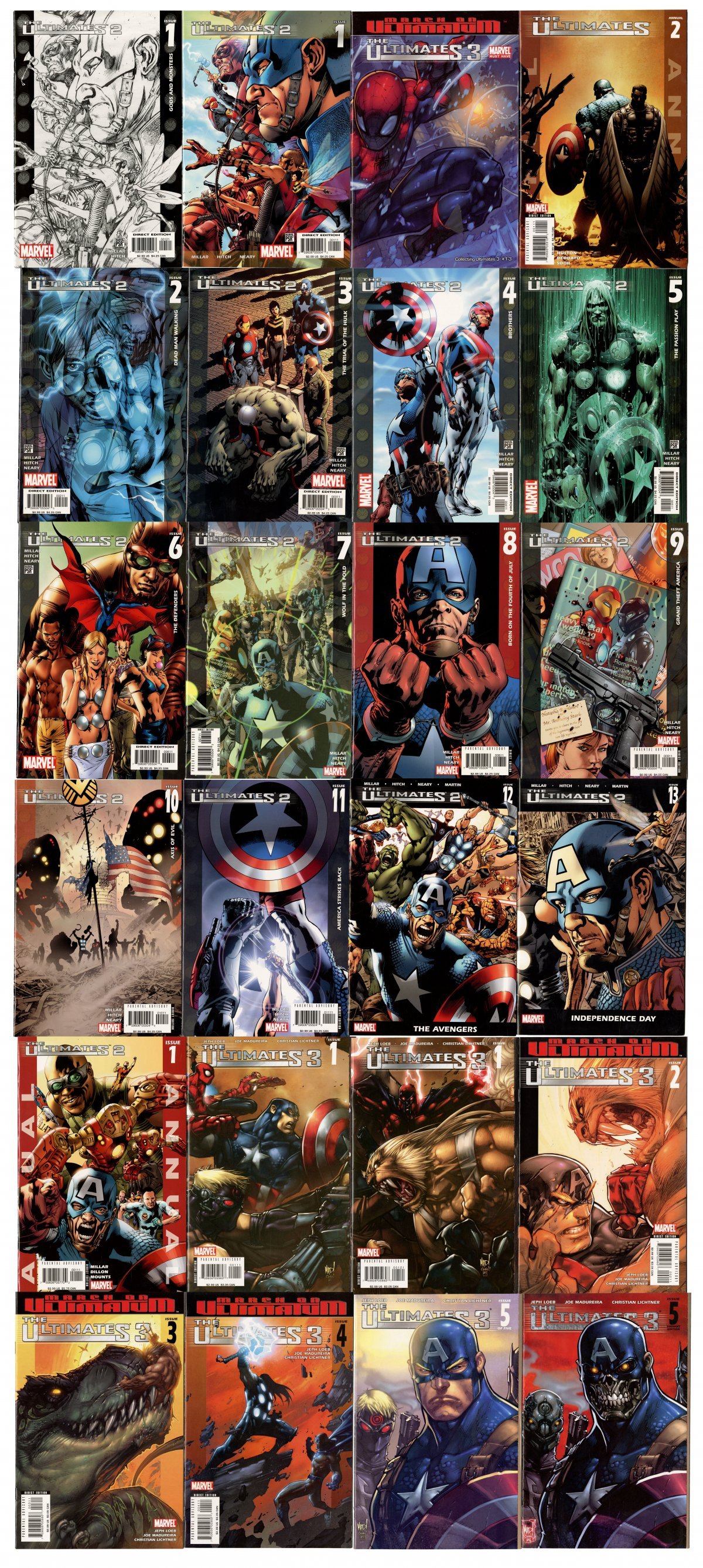 Lot of 24 Ultimates comics including the full run of Ultimates 2, Ultimates 3 and more!; Average Grade: 9.4-Ultimates 2 #1-13 (2x of #1, standard cover and variant)