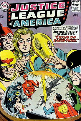"Crisis on Earth-3"; 1st app. of the Crime Syndicate of America; JSA crossover; 1st Silver Age app. of Starman; COMIC BOOK IMPACT rating of 7 (CBI)1st app. of Crime Syndicate