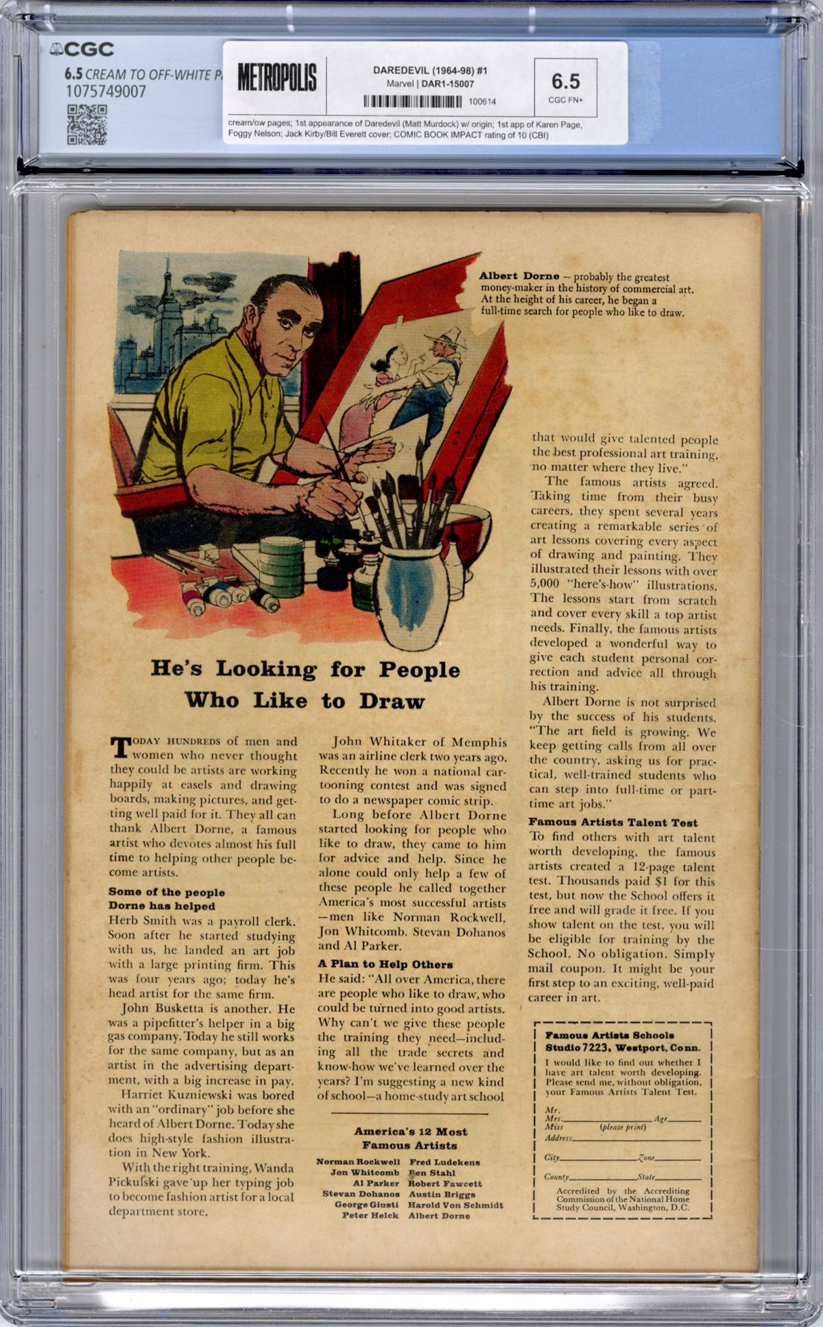 1st appearance of Daredevil (Matt Murdock) w/ origin; 1st app of Karen Page, Foggy Nelson; Jack Kirby/Bill Everett cover; COMIC BOOK IMPACT rating of 10 (CBI)