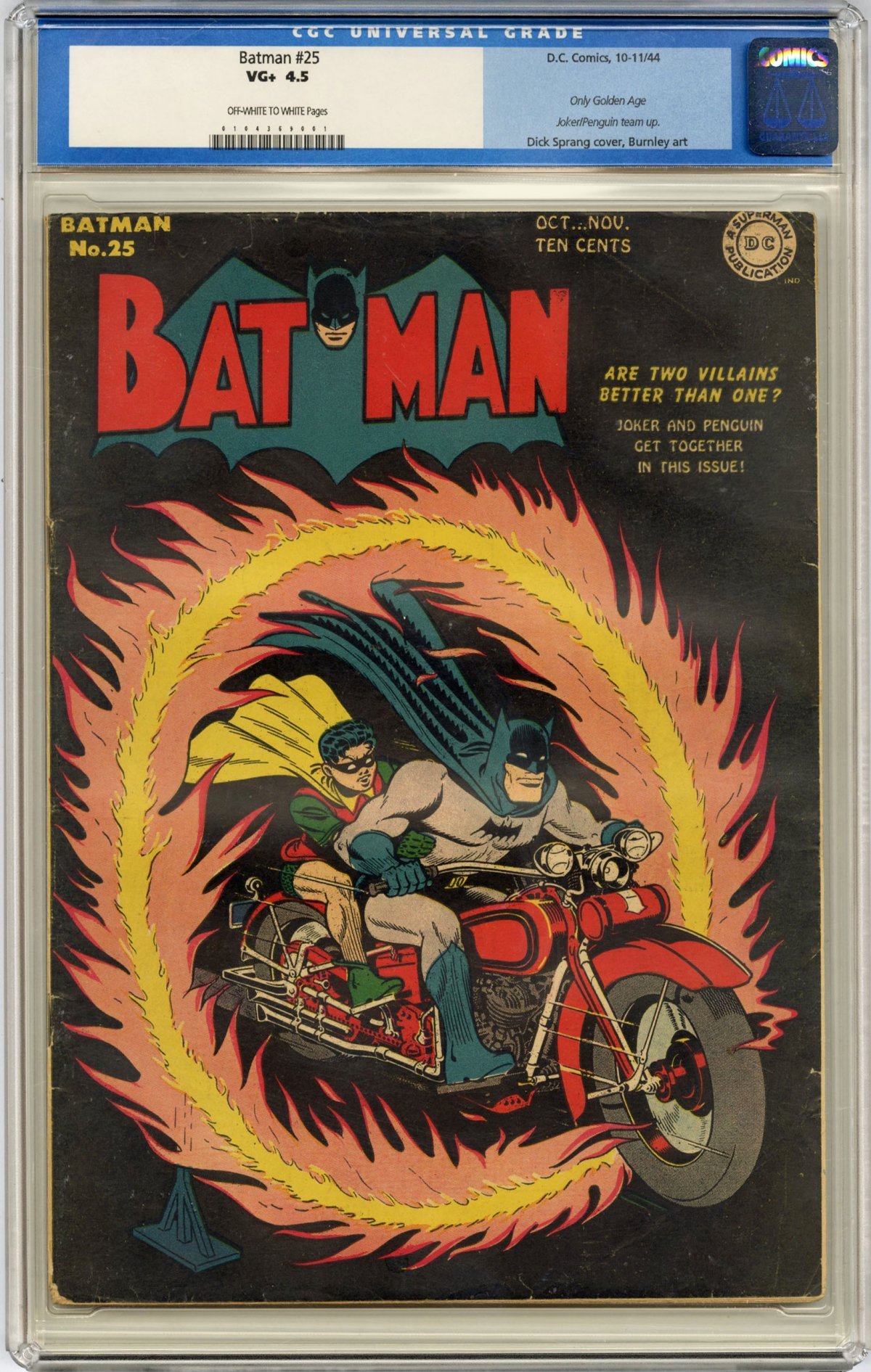 Dick Sprang motorcycle cover; Jack Burnley/Jerry Robinson art; Jerry Robinson inks; Only Golden Age Joker/Penguin team-up; Alfred backup story