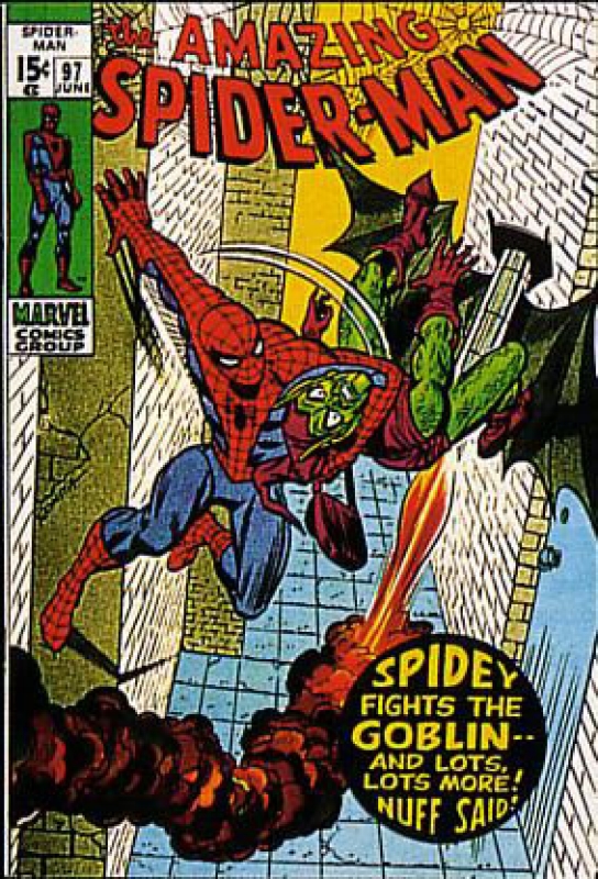 John Romita cover, Gil Kane art; drug story not approved by Comics Code Authority; Green Goblin app; COMIC BOOK IMPACT rating of 7 (CBI)