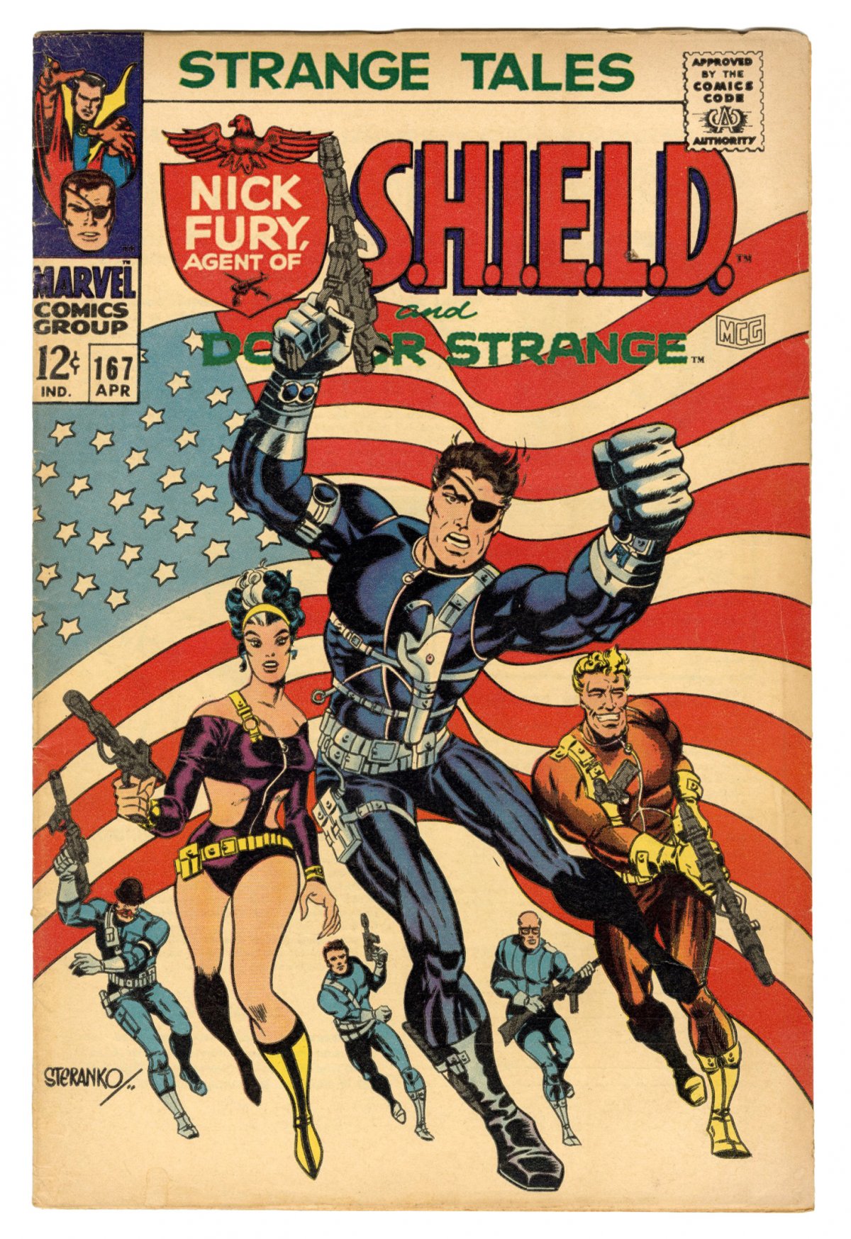COMMENTS: Jim Steranko cvr/art; classic flag cover; Yellow Claw app, Doctor Doom cameo; COMIC BOOK IMPACT rating of 7 (CBI)