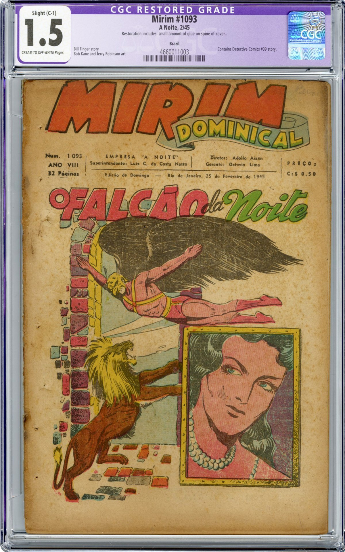 Brazilian Edition (Feb 25, 1945); hawkman cover; contains Detective Comics #39 story; Bob Kane and Jerry Robinson art