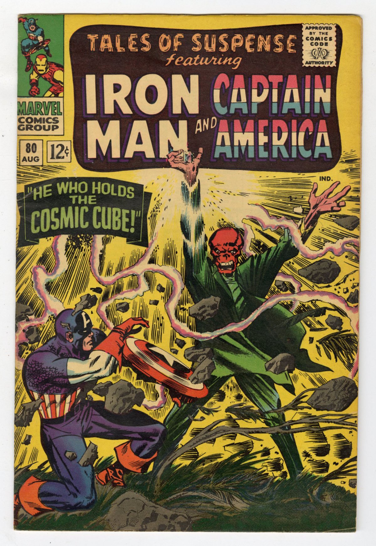 COMMENTS: classic Jack Kirby Cap + Red Skull Cosmic Cube cover; 1st title crossover with Tales to Astonish #82; COMIC BOOK IMPACT rating of 7 (CBI)