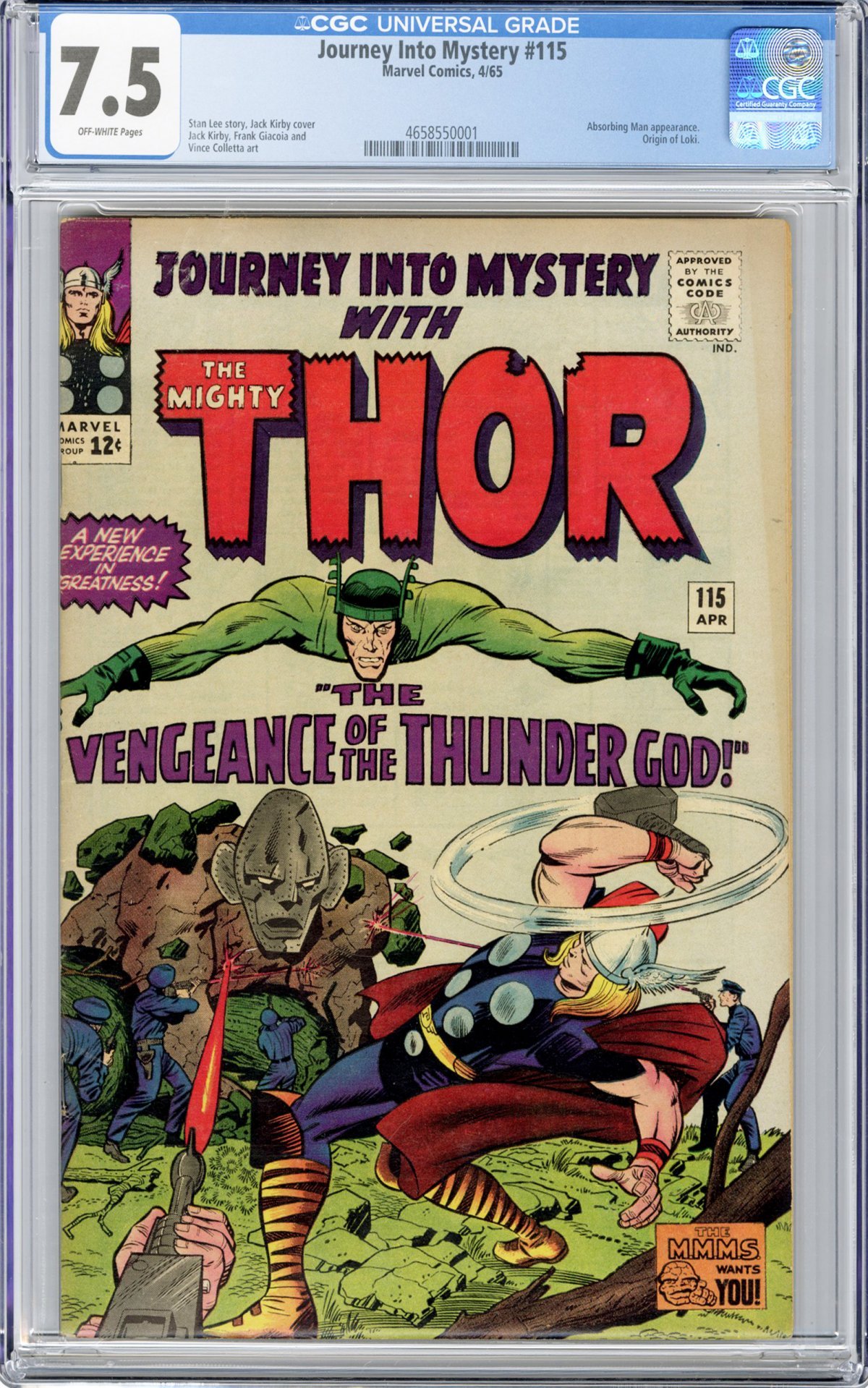Jack Kirby cover/art; Frank Giacoia/Chic Stone inks; Origin of Loki; Absorbing Man app.