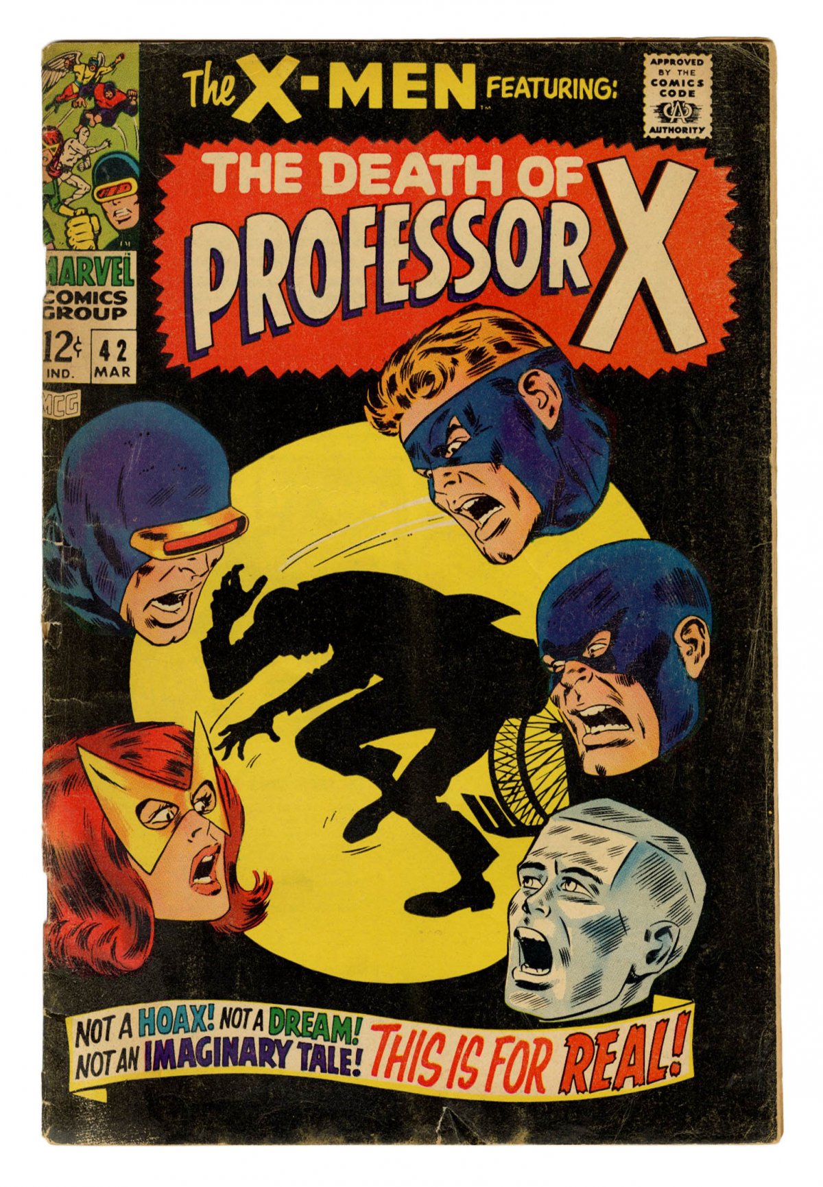 John Buscema cover; "Death" of Professor X; Origin of Cyclops.; COMIC BOOK IMPACT rating of 6 (CBI)