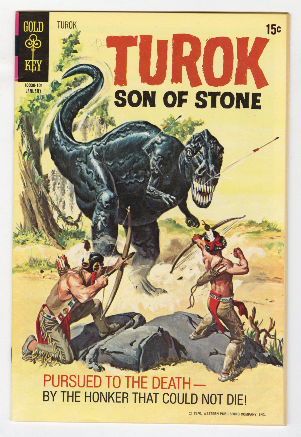 File CopyPainted cover. Turok in "The Savage Flame" "Part 1: Into the Net" and "Part 2: Playing With Fire" in which Turok and Andar face a tribe of cavemen who have the power of fire. Issue also has backup feature "Young Earth - The Fire Finders," a one-page text feature "Prehistoric Americans: The Mysterious Olmecs," and Gold Key Comics Club News features.