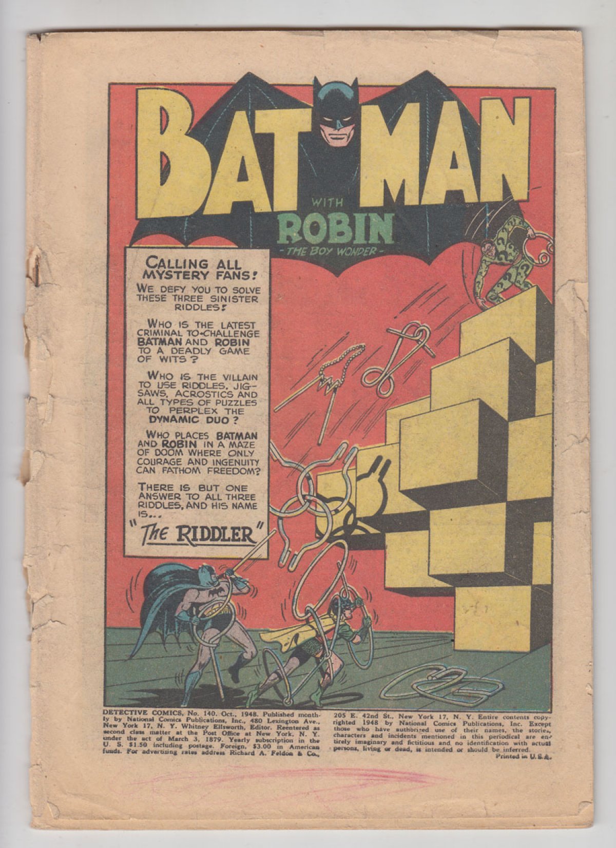 1st appearance of the Riddler, w/ origin (10/48) COMIC BOOK IMPACT rating of 8 (CBI)