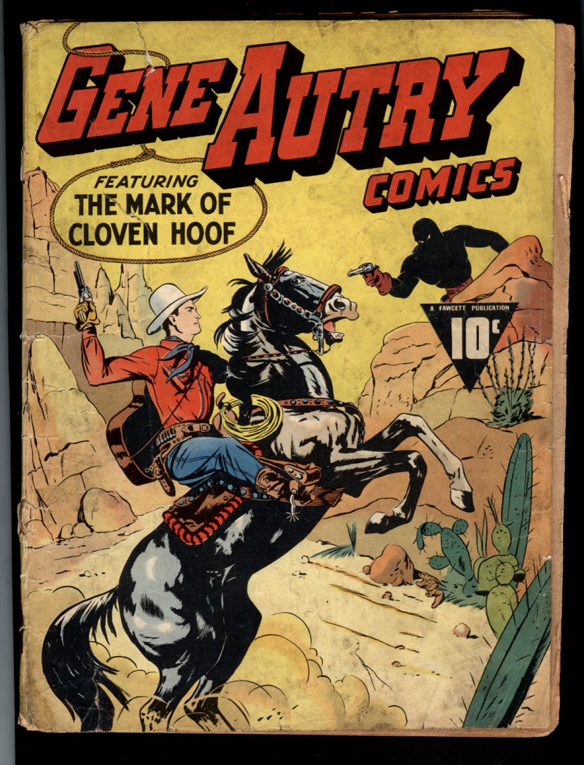 COMMENTS: scarce; the first Fawcett western comic; The Mark of the Cloven Hoof (1/42)