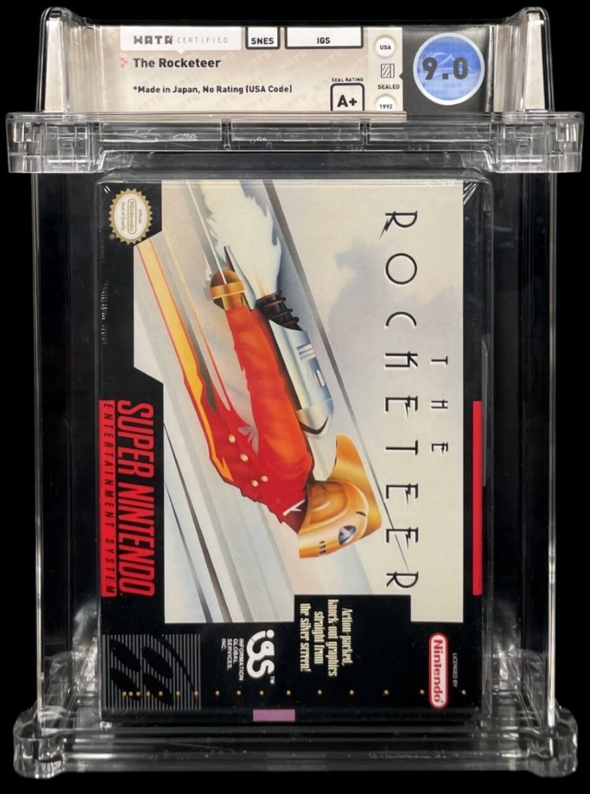 Cover Artist: John Rowe; Based on the 1991 movieFUEL UP YOUR SUPER NINTENDO ENTERTAINMENT SYSTEM WITH THE ROCKETEER FROM IGS. Fire your thrusters and launch ace pilot Cliff Secord on his most challenging adventure yet. Fly, shoot or box your way through paratrooping rocketmen, Armored Flying Tanks and blizzards of bombs. Use his amazing rocket pack to defeat the enemy and rescue Jenny Blake from the clutches of nefarious villains. Rocket your way into the most realistic world in any game ever. State-of-the-art digitized graphics and spectacular stereo sound create an interactive movie experience. Battle through 4 different arcade sequences and 6 levels of full-throttle, action-packed game play! Blast into the next generation of video games with The Rocketeer. You've never experienced anything like it before!