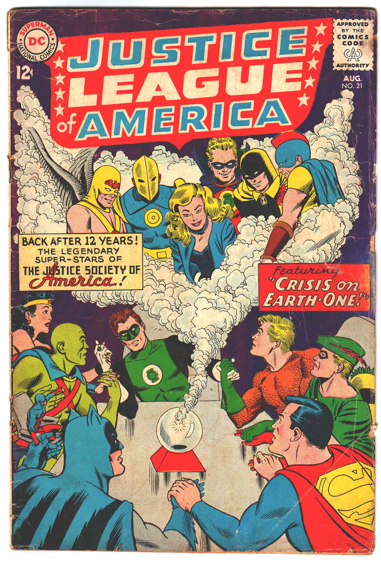 COMMENTS: classic Crisis on Earth-One; 1st Silver Age Doctor Fate, Hourman; re-intro Justice Society