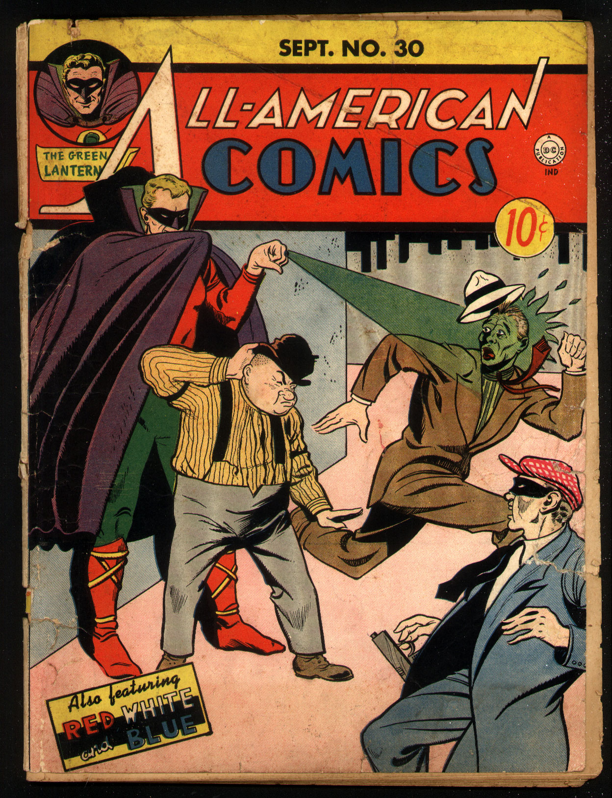 Howard Purcell cover/art; Green Lantern blasts a crook in the face!