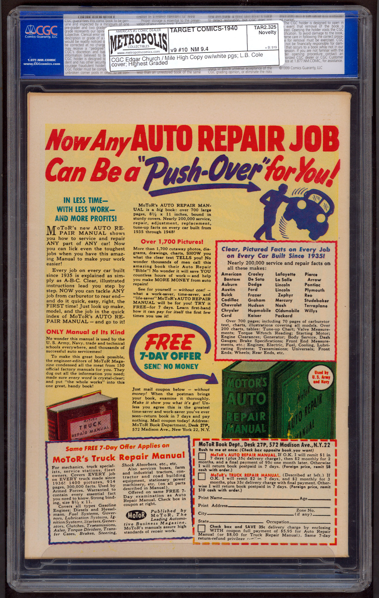Cole's comic book career started in the early 1940s, mainly as a cover artist for titles such as Suspense Comics (Et-Es-Go Magazines) and Contact Comics (Aviation Press). He soon became known for his distinctive covers: examples include the covers to Mask Comics #1, Mask Comics #2 (Rural Home), Contact Comics #12, and Captain Flight Comics #11 (Four Star Publications). An avid science fiction fan, Cole was known for slipping in sci-fi elements even when they weren't appropriate, such as rocket ships and ray guns appearing on the covers of Captain Flight Comics and Contact Comics. During this time, Cole created the character "Wiggles the Wonderworm" who appeared in five issues of Taffy Comics, published by Rural Home/Orbit Publications.