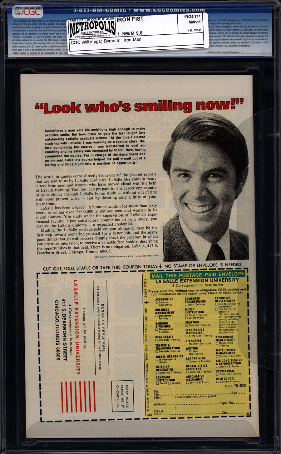IF vs Iron Man battle cover; Byrne art; COMIC BOOK IMPACT rating of 7 (CB%I)