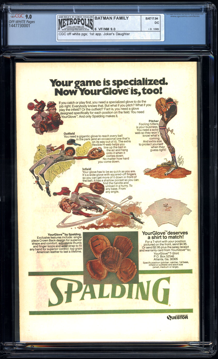 1st app. Joker's Daughter; COMIC BOOK IMPACT rating of 6 (CBI)Giant-size issue. Batgirl stars in "Valley of the Copper Moon!" Script by Elliot Maggin, pencils by Jose Delbo, inks by Vince Colletta. Robin stars in "The Joker's Daughter!" Script by Bob Rozakis, pencils by Irv Novick, inks by Frank McLaughlin (1st appearance). Reprint back-up stories: Alfred stars in "In the Soup!" with art by Jerry Robinson (from Batman 32); Batman and Robin star in "The New Crimes of the Mad Hatter" (from Batman 161). Ernie Chan (as "Ernie Chua") cover.