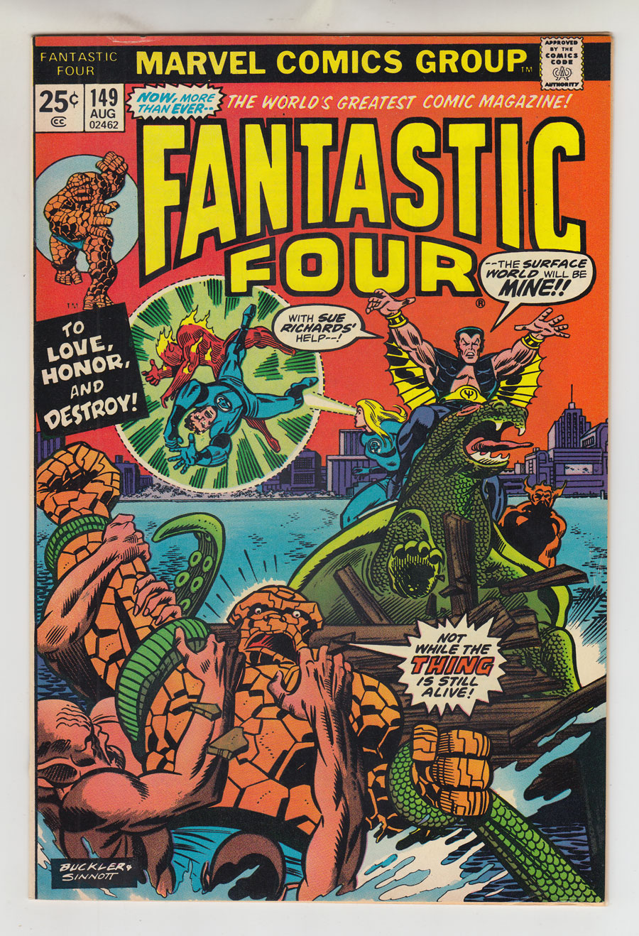 COMMENTS: Buckler/Sinnott sea monster Sub-Mariner + Thing battle cover (to the death) (8/74) COMIC BOOK IMPACT rating of 5 (CBI)