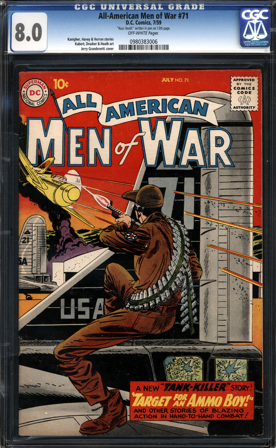 Joe Kubert (Sept. 18, 1926 - Aug. 12, 2012) began his career at the age of 13. He was also an art teacher and founder of The Kubert School. He is best known for his work on the characters like Sgt. Rock, Hawkman, Tor, Son of Sinbad and the Viking Prince.