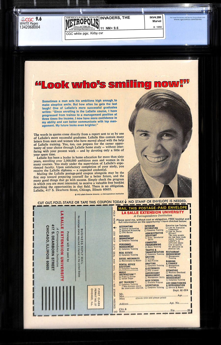 1st Blue Bullet; Kirby cover (12/76) COMIC BOOK IMPACT rating of 6 (CBI)"Night of the Blue Bullet!" Written by Roy Thomas. Art by Frank Robbins and Frank Springer. The Invaders try to stop the uncanny power of the Blue Bullet. Meanwhile, a transfusion of blood from the original Human Torch has an unexpected effect on Jacqueline Falsworth, the victim of a vampire's bite.