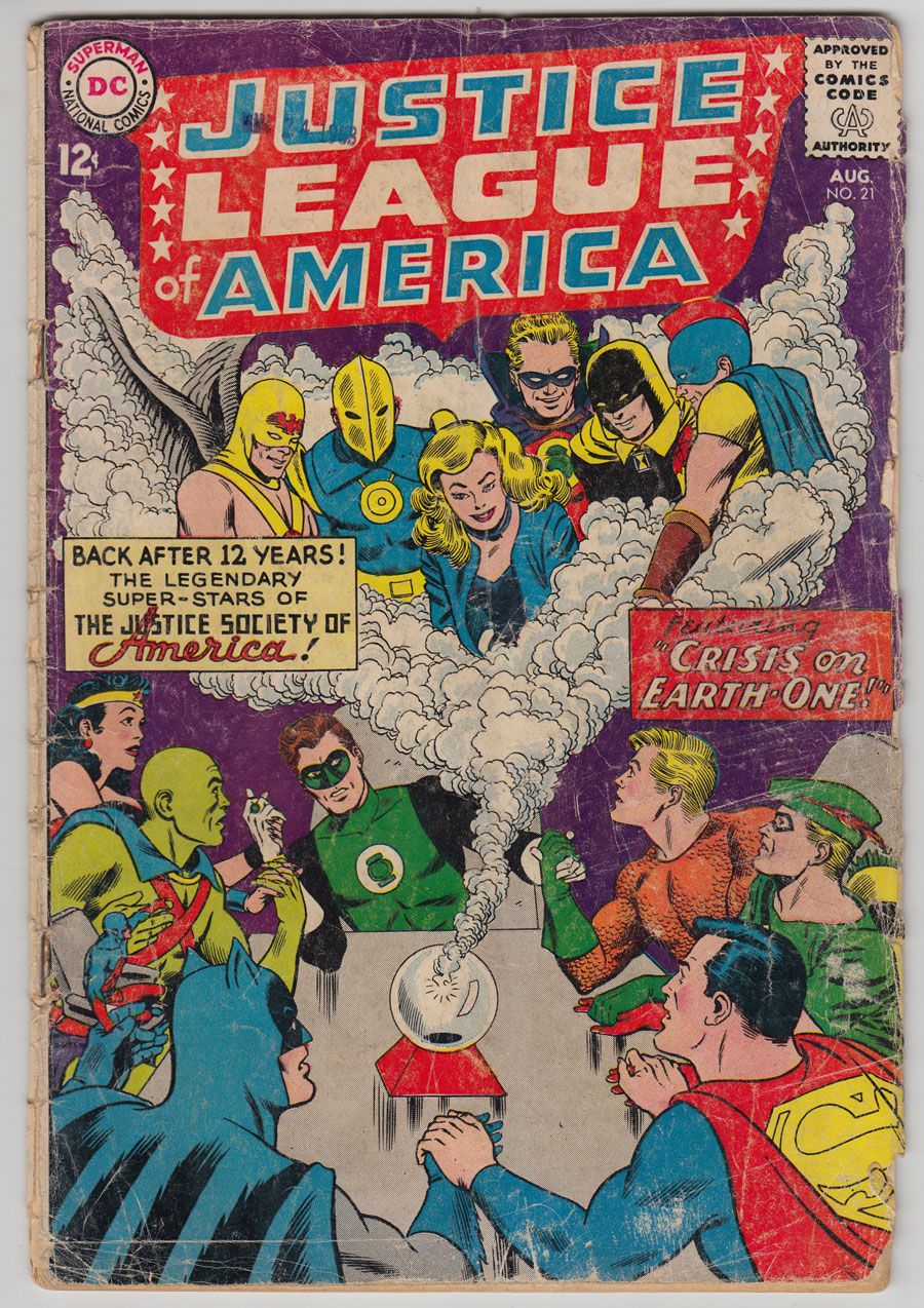 COMMENTS: classic Crisis on Earth-One; 1st Silver Age Doctor Fate, Hourman; re-intro Justice Society