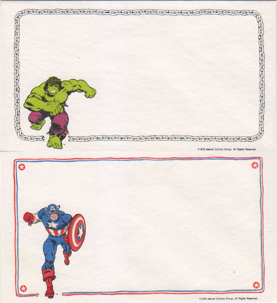 COMMENTS: 1978 Marvel superhero stationery in terrific shape! Hulk and Captain America letters, envelopes`