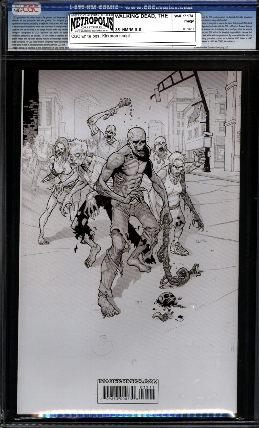 The main crux of the plot line in issue #35 of the Walking Dead is the cleaning out of the prison and Rick's family discovering his hand is missing. The disgusting Adlard cover art really brings home the concept of what it is like to face down the undead, and also what it may be like to exist as an animated, rotting corpse.