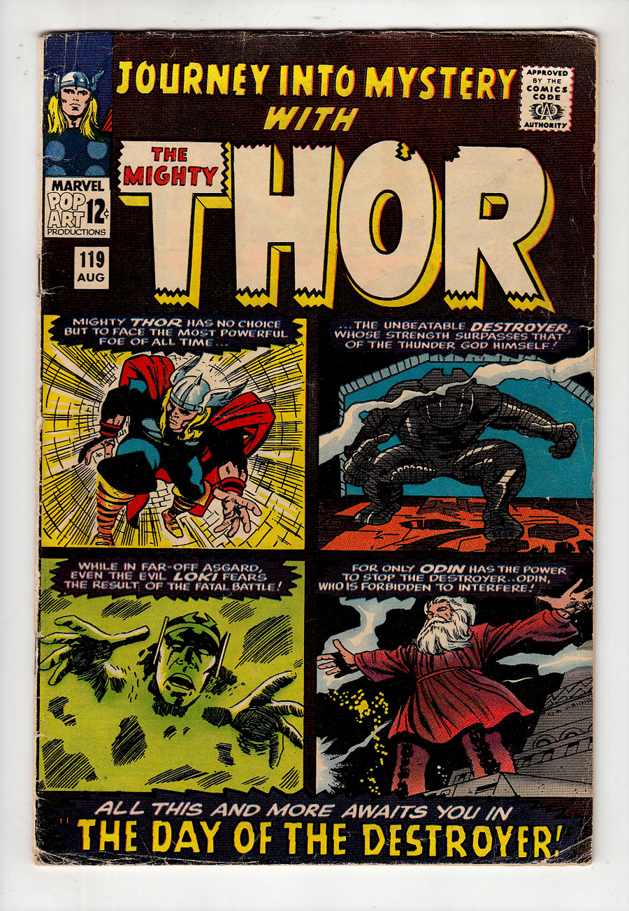 Jack Kirby cover/art; 1st app of Hogun, Fandrall, and Volstagg; 2nd Destroyer; COMIC BOOK IMPACT rating of 7 (CBI)