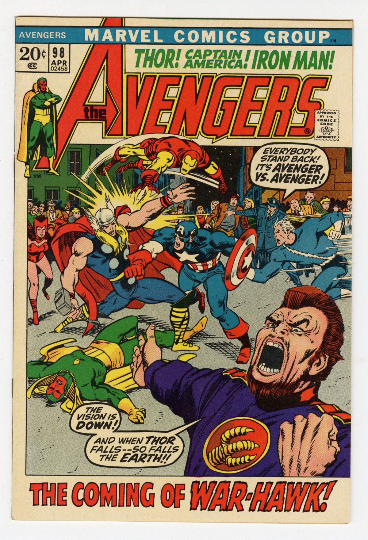 Barry Smith cover/art; Goliath becomes Hawkeye; picture frame Marvel; COMIC BOOK IMPACT rating of 6 (CBI)
