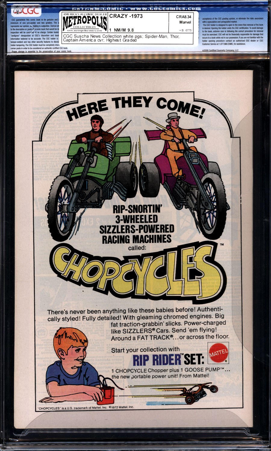 Highest GradedStan Lee and the Marvel Bullpen spoof themselves in these MAD-style stories reprinted from issue #8 of Not Brand Ecch. The newest hero in the Marvel Universe is Forbush-Man, whose costume is a union suit and a saucepan with eyeholes cut in it. Written by Roy Thomas and Gary Friedrich, with art by the likes of Gene Colan, Tom Sutton and Marie Severin, who really did work for MAD in the early days. No relation to Crazy Magazine other than the title.