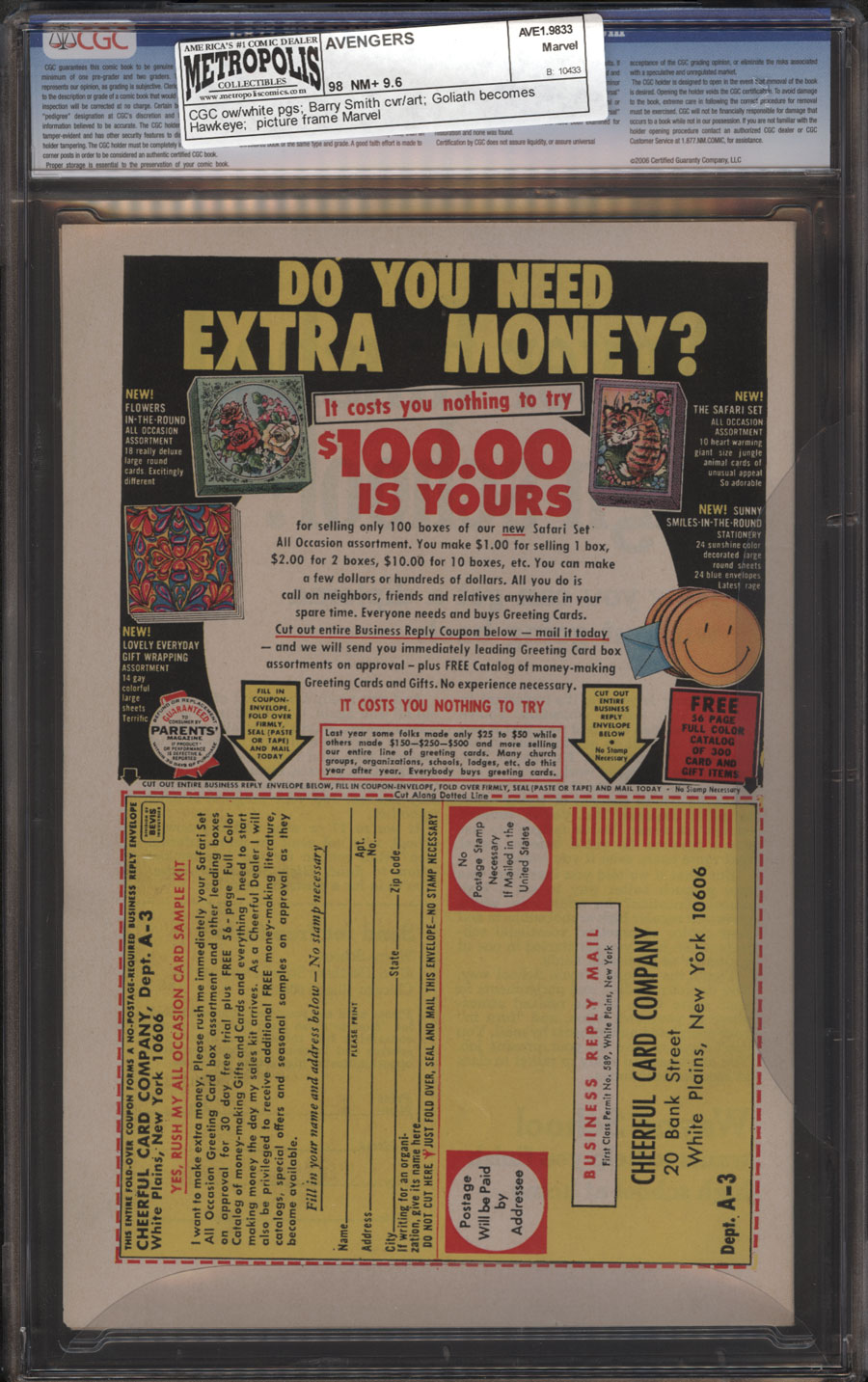 Barry Smith cover/art; Goliath becomes Hawkeye; picture frame Marvel; COMIC BOOK IMPACT rating of 6 (CBI)