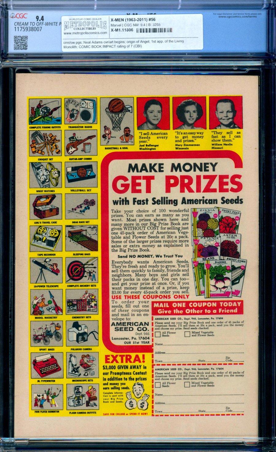 Neal Adams issues begin; Living Pharaoh becomes Living Monolith (1st app), origin of Angel joining X-Men; COMIC BOOK IMPACT rating of 7 (CBI)