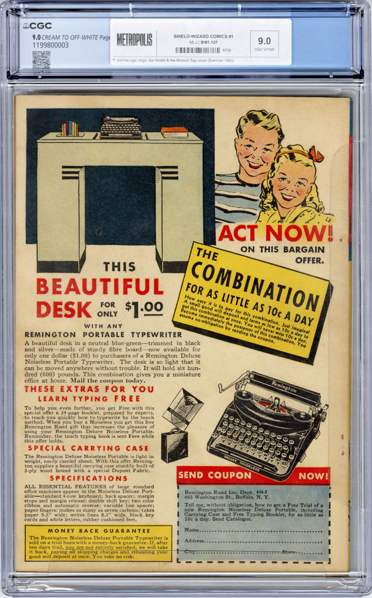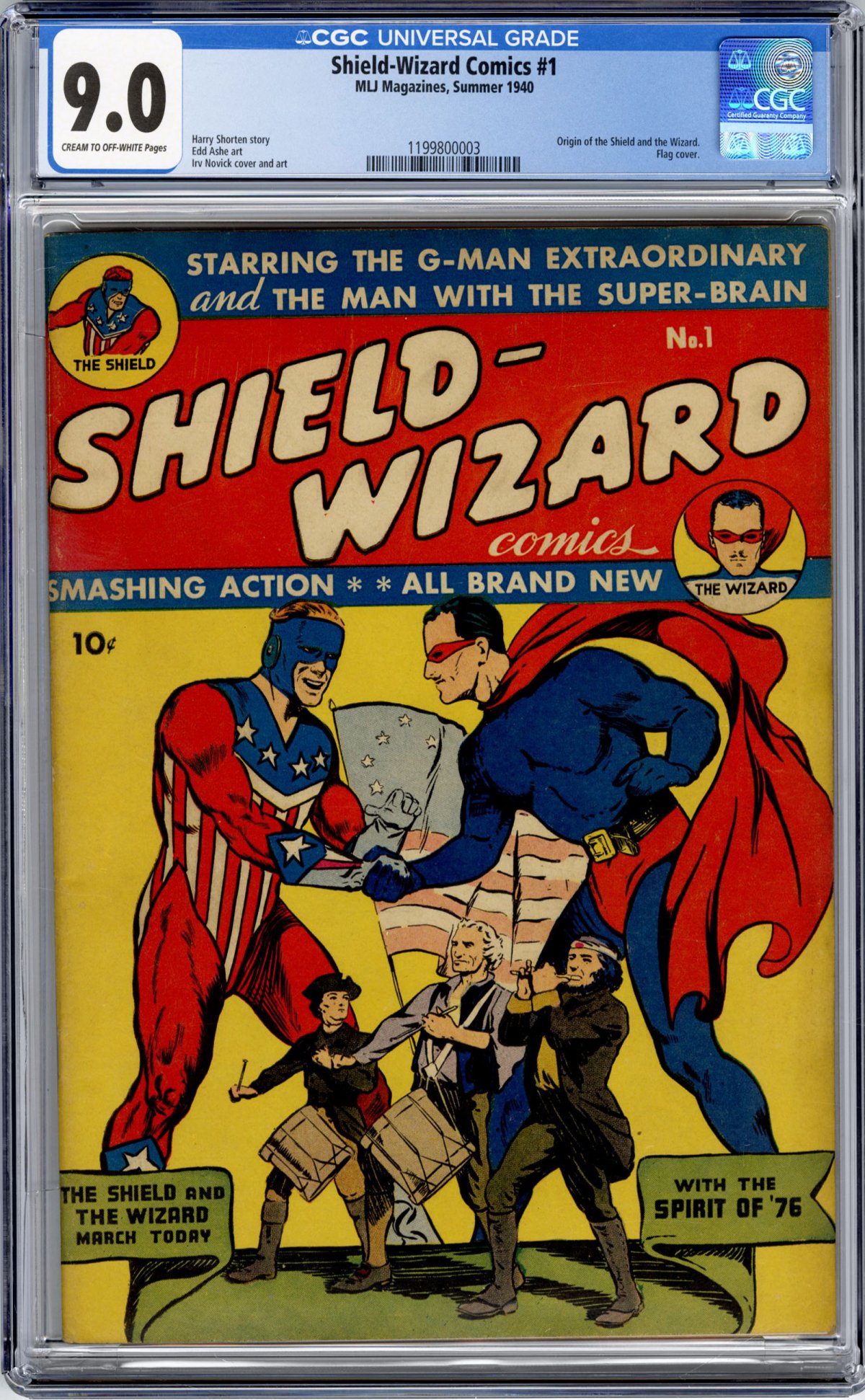 origin the Shield & the Wizard! flag cover (Summer 1940)Before rebranding themselves Archie Comics after their star teenage attraction, MLJ, like most other WWII-era comic publishers, aped the successful DC/Fawcett/Timely formula of patriotic beefcakes smacking around Nazis alongside towheaded sidekicks. MLJ's works combined the cheerful can-do spirit of Fawcett's characters with the naked jingoism of Timely and the relentless energy of DC to create a unique battery of heroes that proved reliable and enjoyable cult favorites all the way through to the present day.