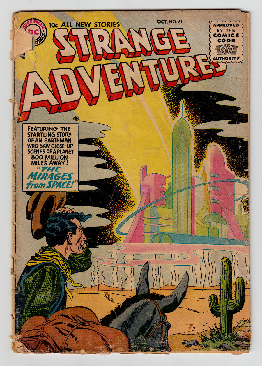 scarce; The Thermometer Man"the Mirages From Space!" (pencils by Gil Kane), "The Thermometer Man," "The Strange Thinking-Cap of Willie Jones!" (pencils by Carmine Infantino), and "The Amazing Two-Time Inventions." Kane cover pencils.