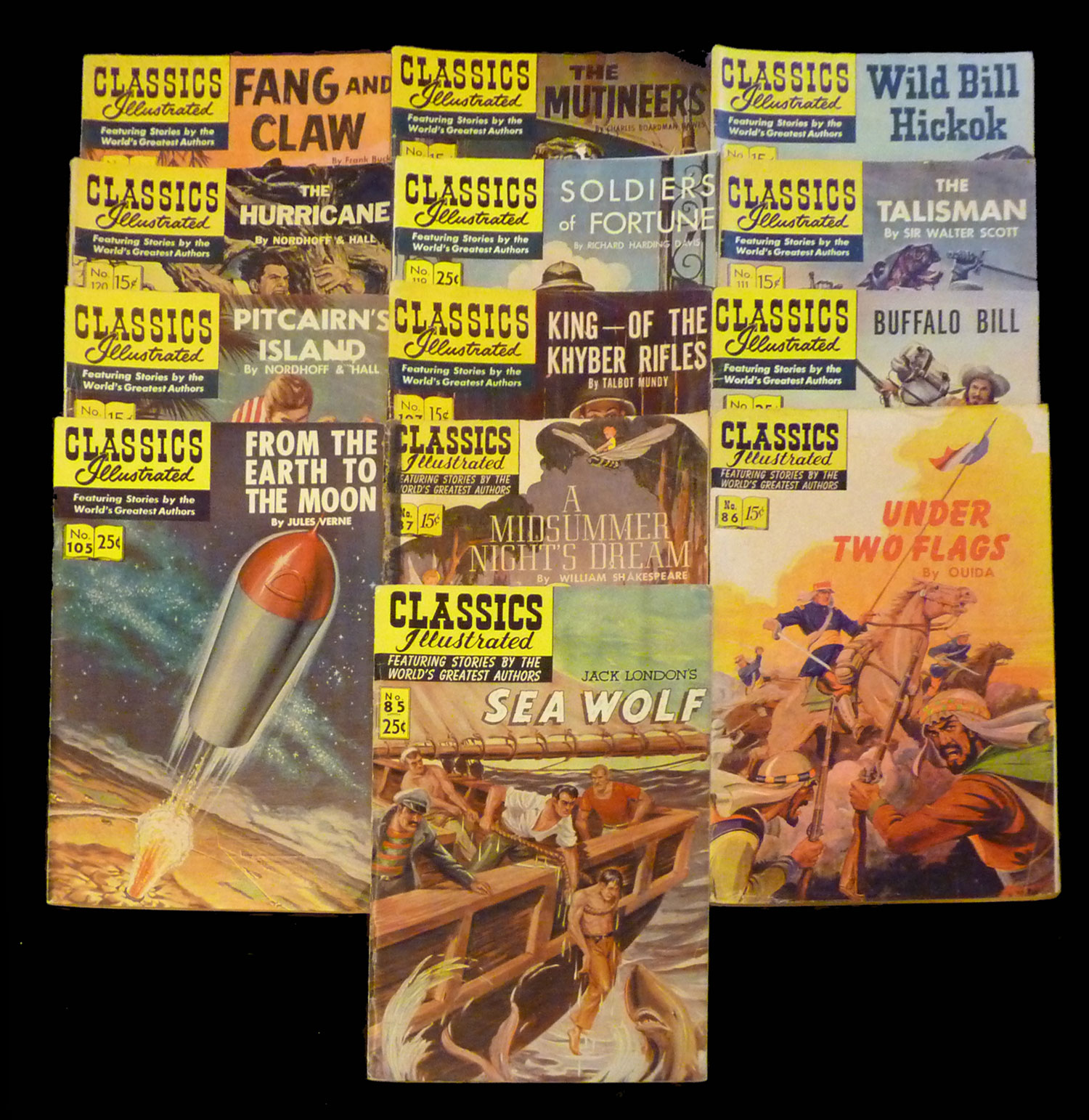 all later editions; issues 17-20, 26, 32-39, 41, 85-87, 105-107, 109, 111, 119-123; most issues FN or better; issue 20 glue at spn; Overstreet Guide Value $230