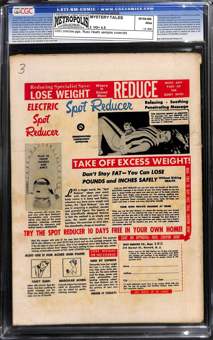 Heath vampire cover (7/52) COMIC BOOK IMPACT rating of 6 (CBI)"The Vampire Strikes" (script by Stan Lee, art by Russ Heath), "And Puppy dots' Tails" (art by Gene Colan), "When Murderers Meet," "Alone With Death" (art by Jim Mooney), and a two-page text story, "Death Ship!"