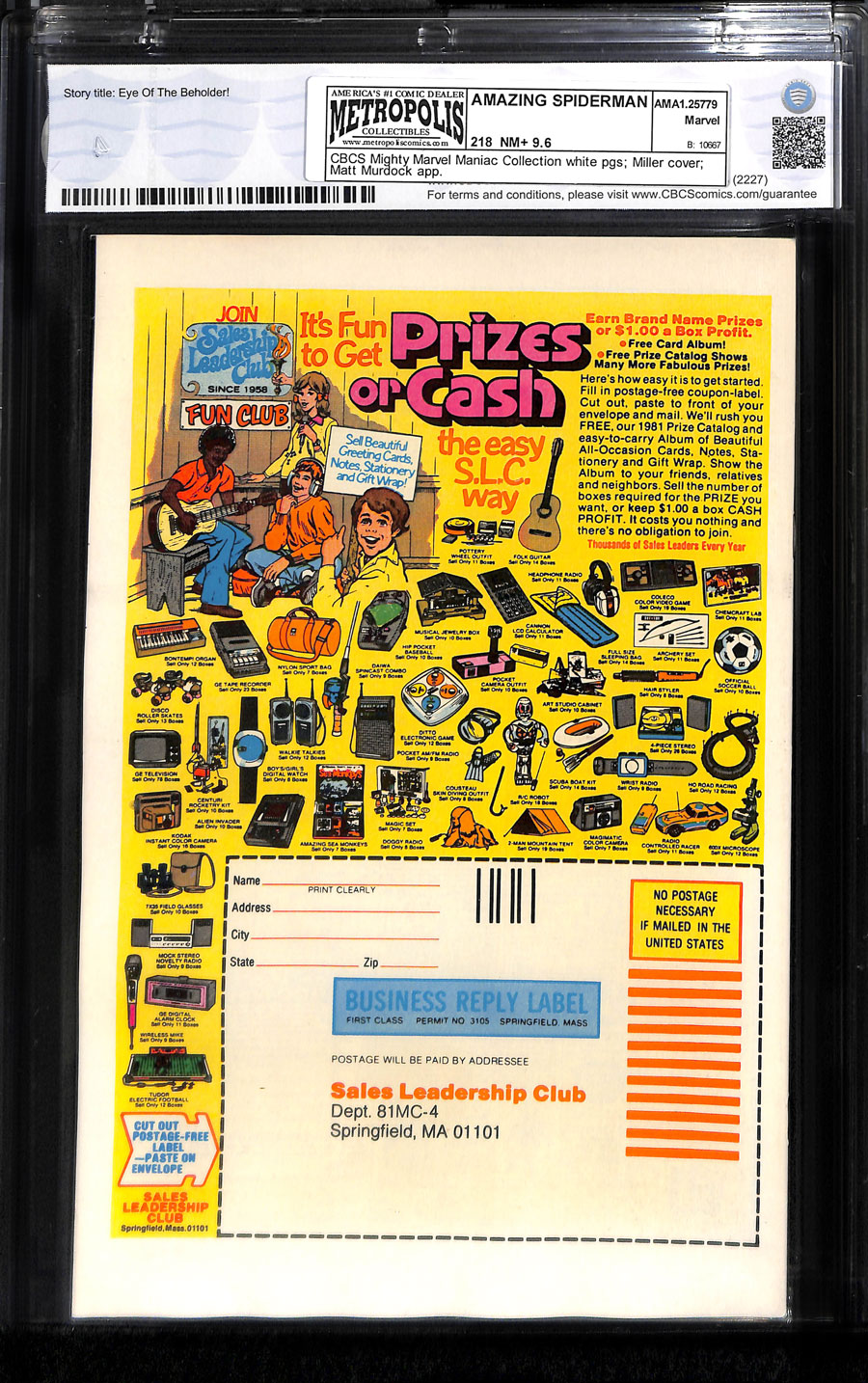Frank Miller cover; Matt Murdock app; COMIC BOOK IMPACT rating of 6 (CBI)