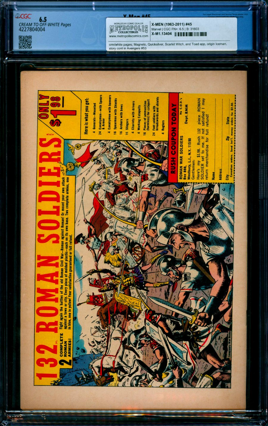 Magneto, Quicksilver, Scarlet Witch, and Toad app, origin Iceman, story cont in Avengers #53; COMIC BOOK IMPACT rating of 6 (CBI)