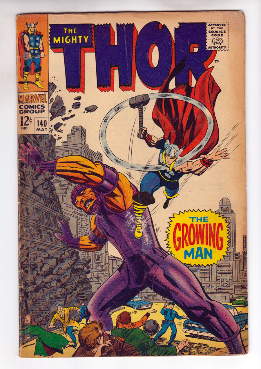 Kang the Conqueror app.; 1st app. of Growing Man; Jack Kirby cvr/art; COMIC BOOK IMPACT rating of 6 (CBI)