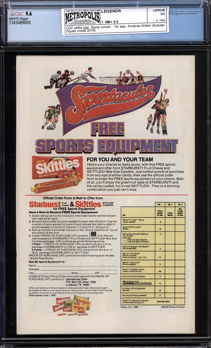 Includes Mask comic insert. Darkseid once again reigns supreme on Apokolips, but the legendary super-heroes of Earth remain a thorn in his side. Thus, he begins Operation Humiliation. Firestorm battles Brimstone, Flash takes on Deadshot, and Captain Marvel (in his first post-Crisis appearance) fights Macro-Man. Legends is designed to kick off three new ongoing series (The Flash, Suicide Squad, and The Justice League) and a mini series (Shazam: A New Beginning). Plotted by John Ostrander and scripted by Lein Wein, with pencils by John Byrne and inks by Karl Kesel.