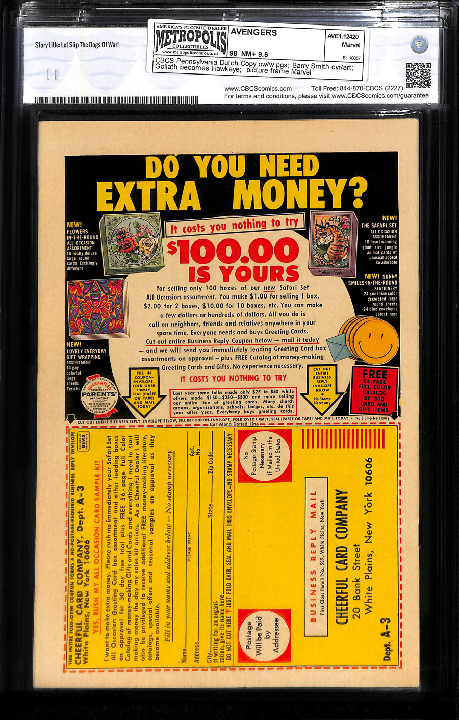 Barry Smith cover/art; Goliath becomes Hawkeye; picture frame Marvel; COMIC BOOK IMPACT rating of 6 (CBI)