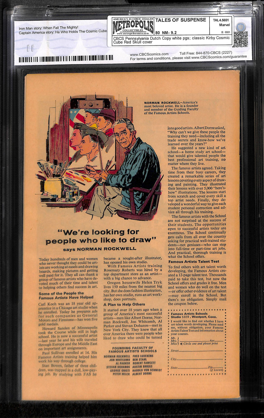 classic Jack Kirby Cap + Red Skull Cosmic Cube cover; 1st title crossover with Tales to Astonish #82; COMIC BOOK IMPACT rating of 7 (CBI)