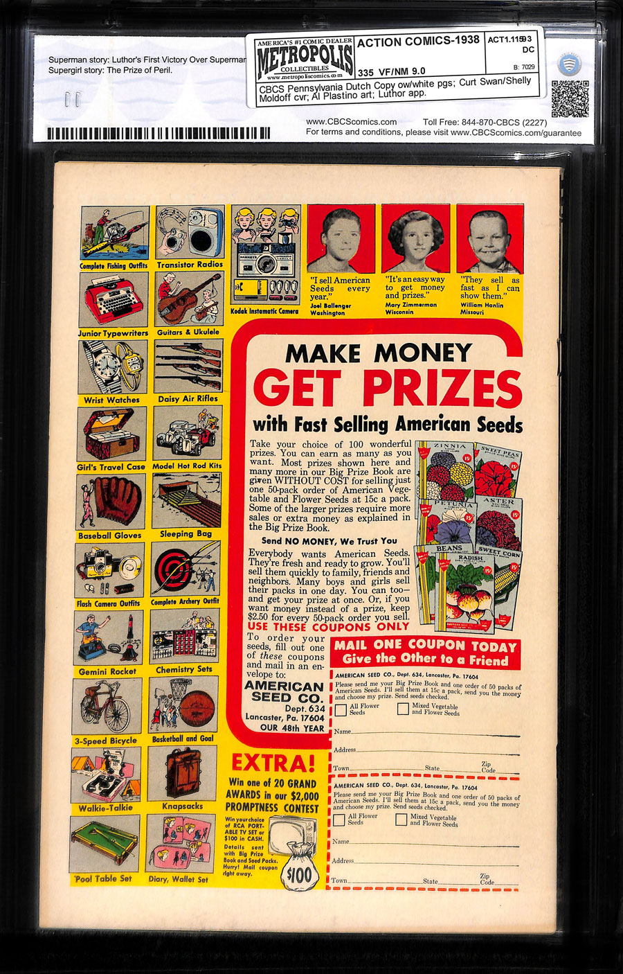 Pennsylvania Dutch CopyCover pencils by Curt Swan, inks by Sheldon Moldoff. "Luthor's First Victory Over Superman!", script by Leo Dorfman, art by Al Plastino; Luthor and Brainiac have destroyed Superman's self-confidence but he eventually manages to defeat them. Supergirl ad. The Spectre ad. "The Prize of Peril," script by Otto Binder, art by Jim Mooney; Linda Danvers cheats to win the Miss Universe contest when she learns that the winner will be taken from Earth and forced to compete in an interplanetary beauty contest. Linda Danvers cheats to win the Miss Universe contest when she learns that the winner will be taken from Earth and forced to compete in an interplanetary beauty contest.
