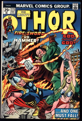 Pennsylvania Dutch CopyFirst 25-cent cover price. Cover pencils by Gil Kane, inks by Frank Giacoia. "Hellfire Across the World!", script by Gerry Conway, pencils by John Buscema, inks by Mike Esposito; Thor and Hercules enter Hades and are attacked by demon-bats, and snake women; They fight their way past, only to find that Pluto has fled with Krista; They go to Asgard, where Odin reveals that Pluto has gone to Manhattan; Thor and Hercules follow him there; Thor defeats Pluto and drives him away; He then discovers that Krista is dying, and only Don Blake can save her. Appearances by Sif and Hildegarde. The letters page contains Marvel Value Stamp series A #12 (Daredevil by Jack Kirby)