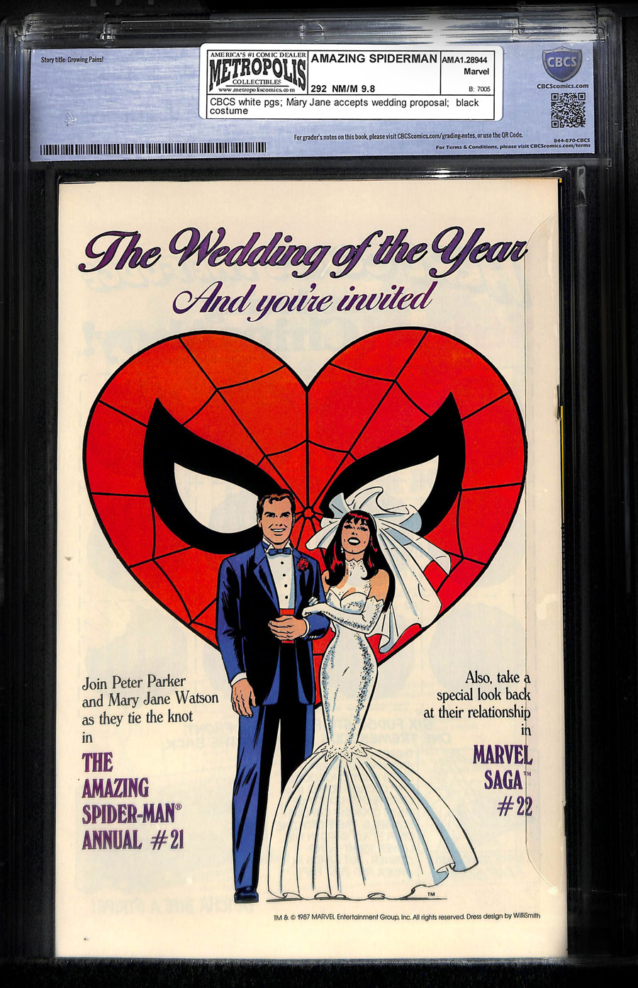 Mary Jane accepts wedding proposal; black costume; COMIC BOOK IMPACT rating of 6 (CBI)