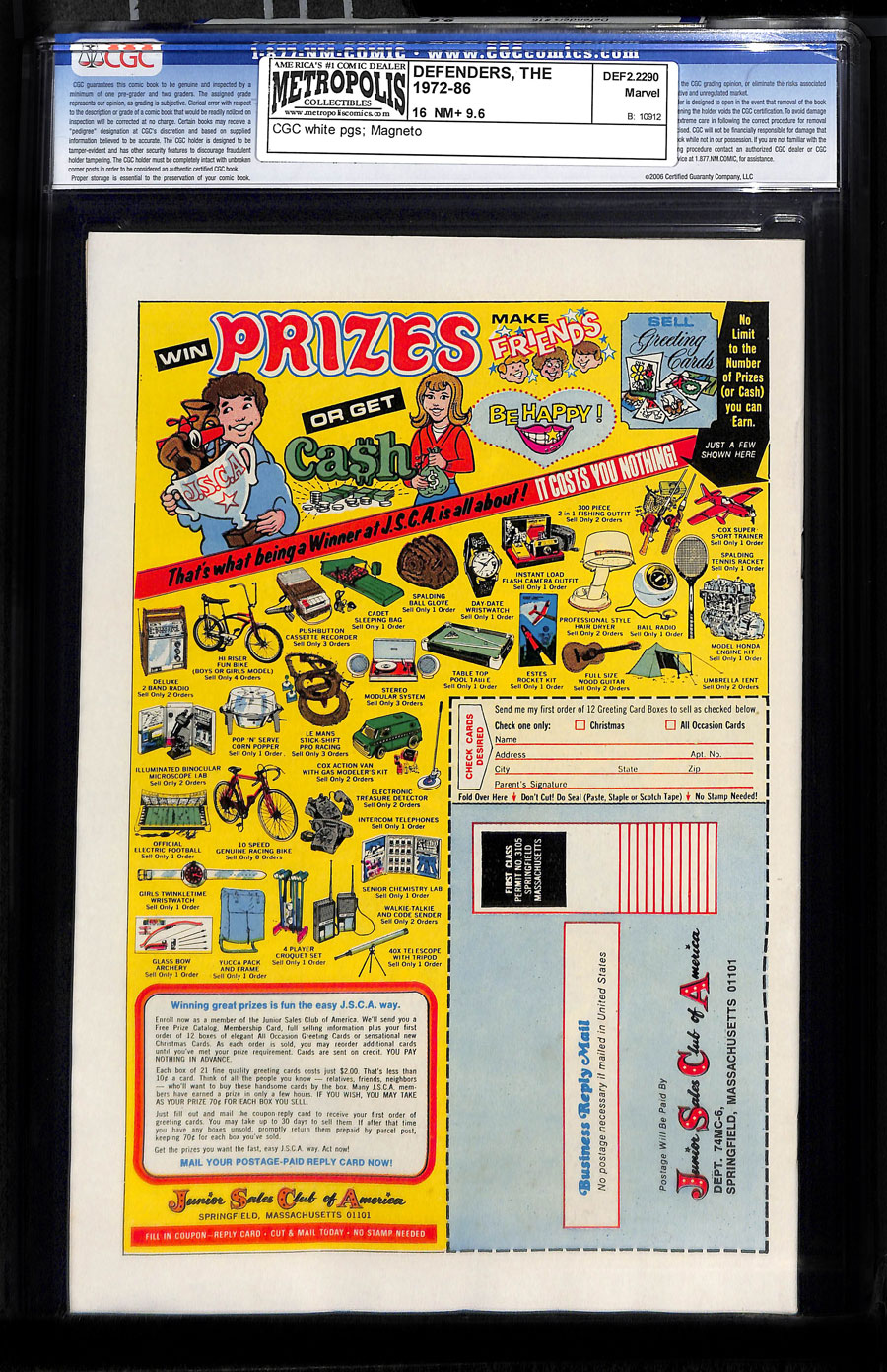 Magneto (early Defenders are sleepers. Buy 'em up now). COMIC BOOK IMPACT rating of 6 (CBI)