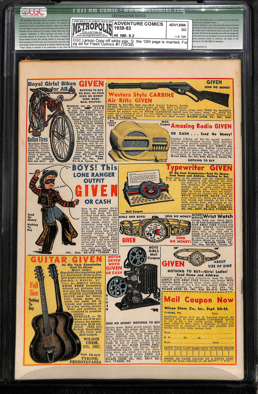 Fred Guardineer cvr; Full pg ad for Flash Comics #1 (12/39)