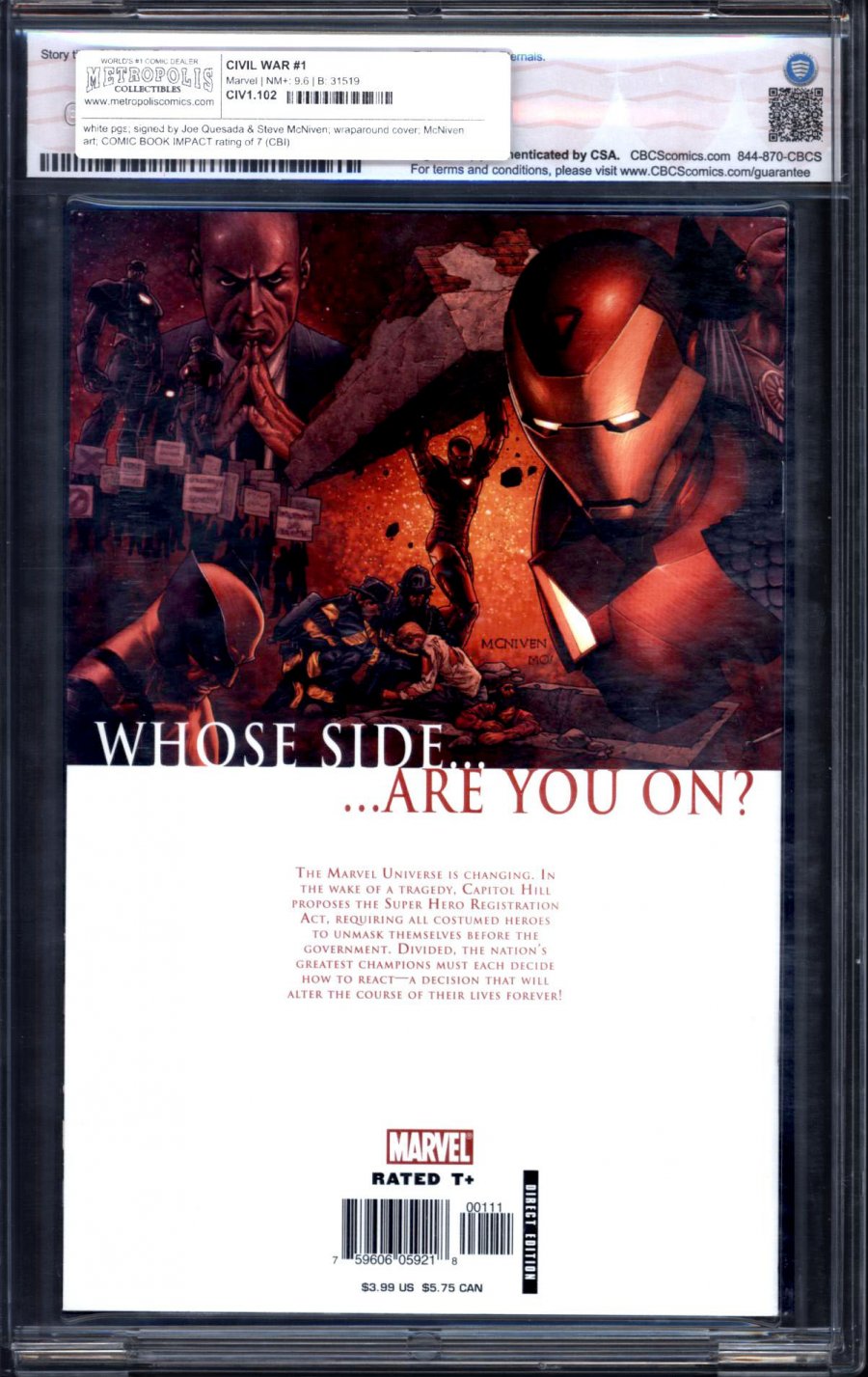 white pgs; signed by Joe Quesada & Steve McNiven; wraparound cover