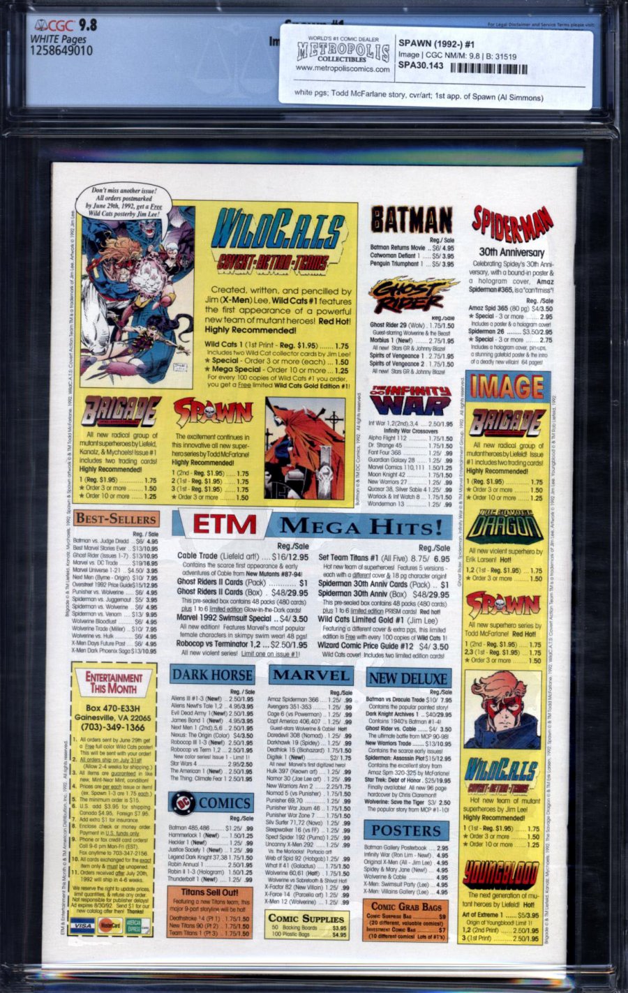 Todd McFarlane cover/art; 1st app of Spawn (Al Simmons); George Perez Spawn Pin-up; COMIC BOOK IMPACT rating of 7 (CBI)