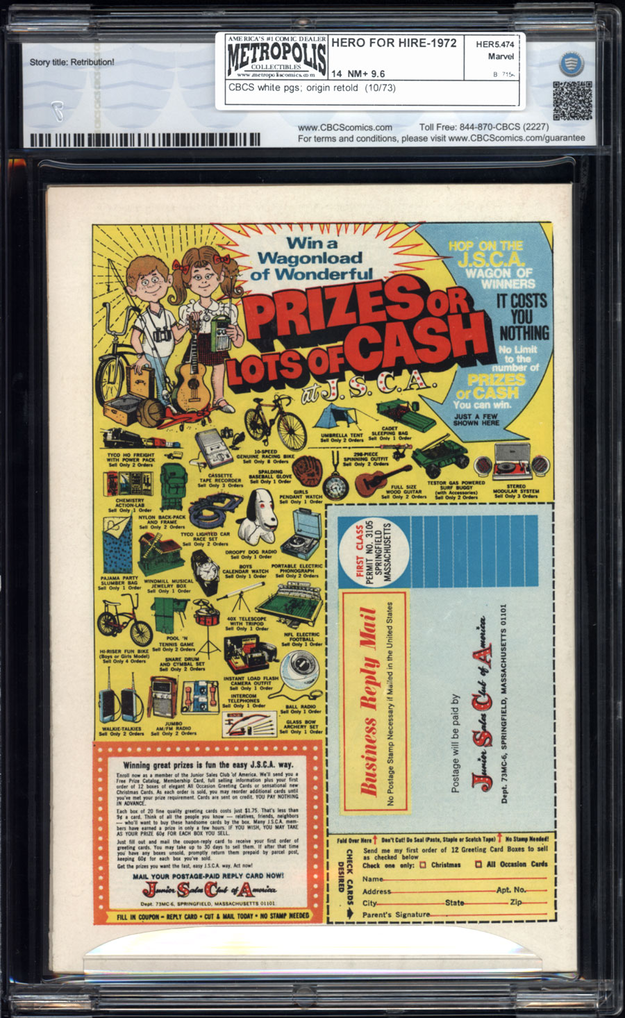 origin retold (10/73) COMIC BOOK IMPACT rating of 6 (CBI)"Retribution!" Part 1 of 3. Story by Steve Englehart and Billy Graham. Art by Billy Graham. Luke Cage pits his super-human strength against the man-mountain known as Big Ben. Plus, Claire learns the truth about Luke's past.